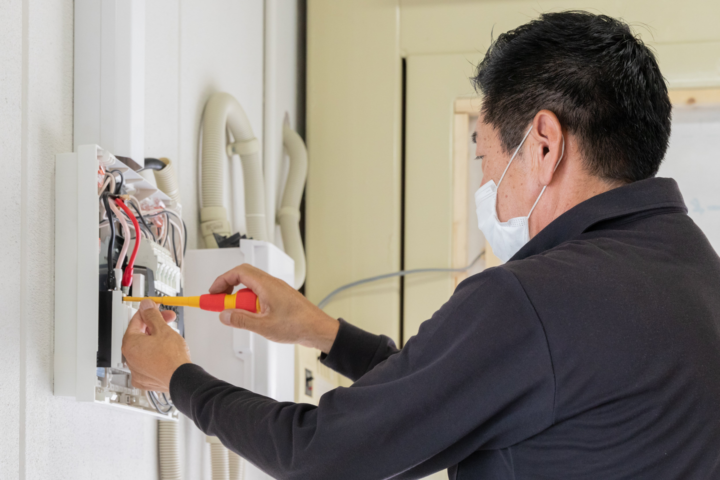 元々、若い頃から電気工事の会社で働いていたんです。長年この業界にいて、自然といつかは自分の会社を作りたいと思うようになりました。今は息子と二人三脚で会社を運営していて、ゆくゆくは彼に継いでもらえたらと思っています。もちろん、意志次第ではあるんですけどね。
