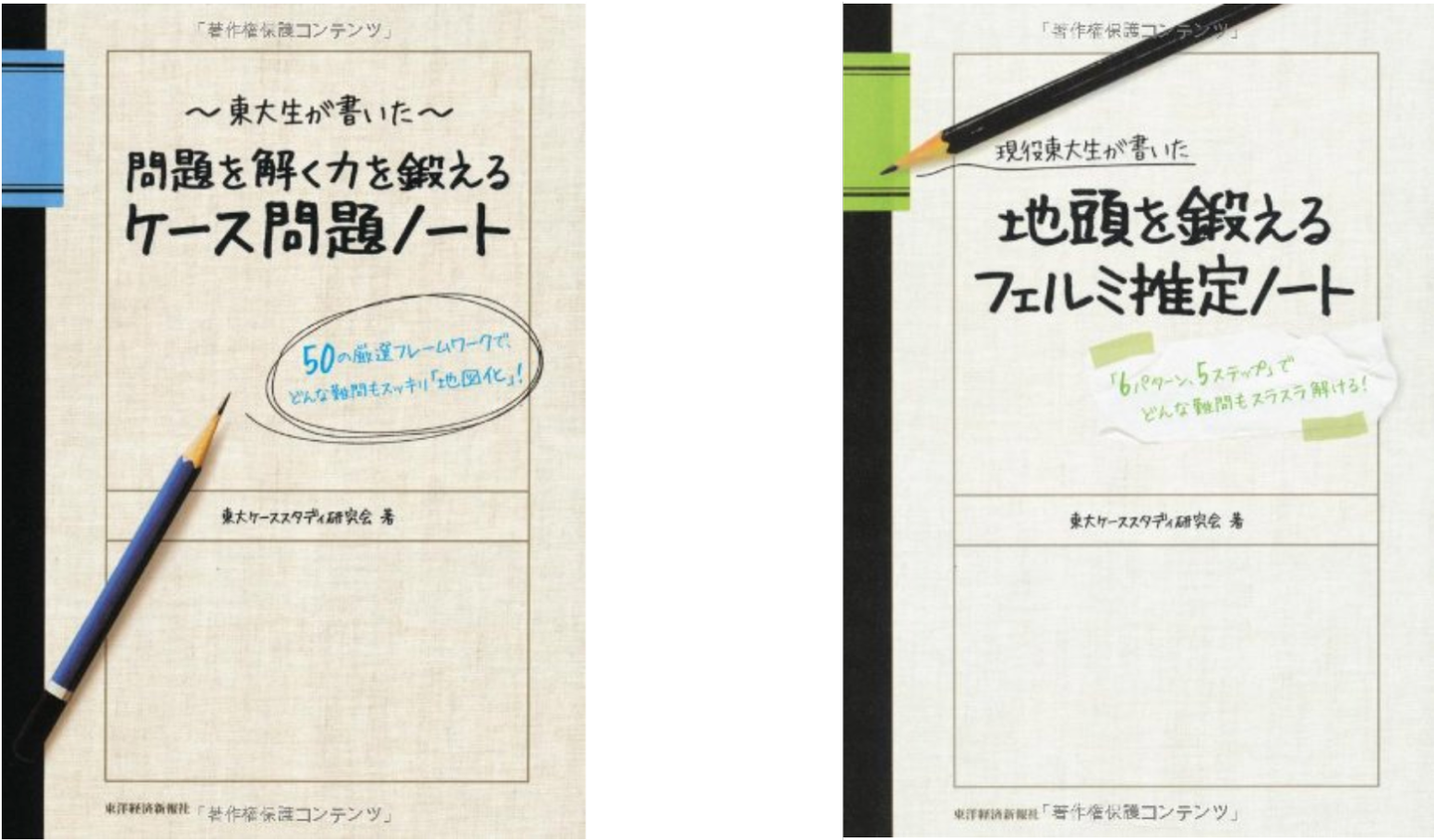 実は、写真の「ケース問題ノート」「フェルミ推定ノート」に加え「ディスカッションノート」というものもあるのですが、今回は上に挙げさせていただいた2冊についてご紹介させていただきます。