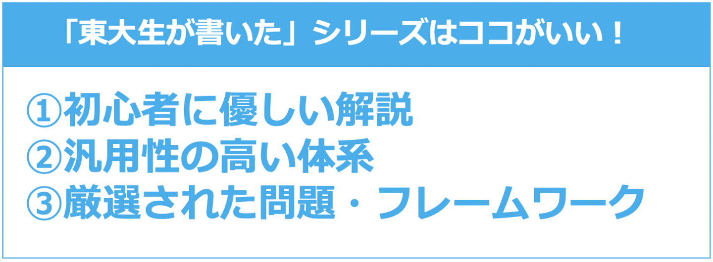 そんな声が聞こえてきましたので、ここからは東大生が書いたシリーズのおすすめするポイントについて説明します!