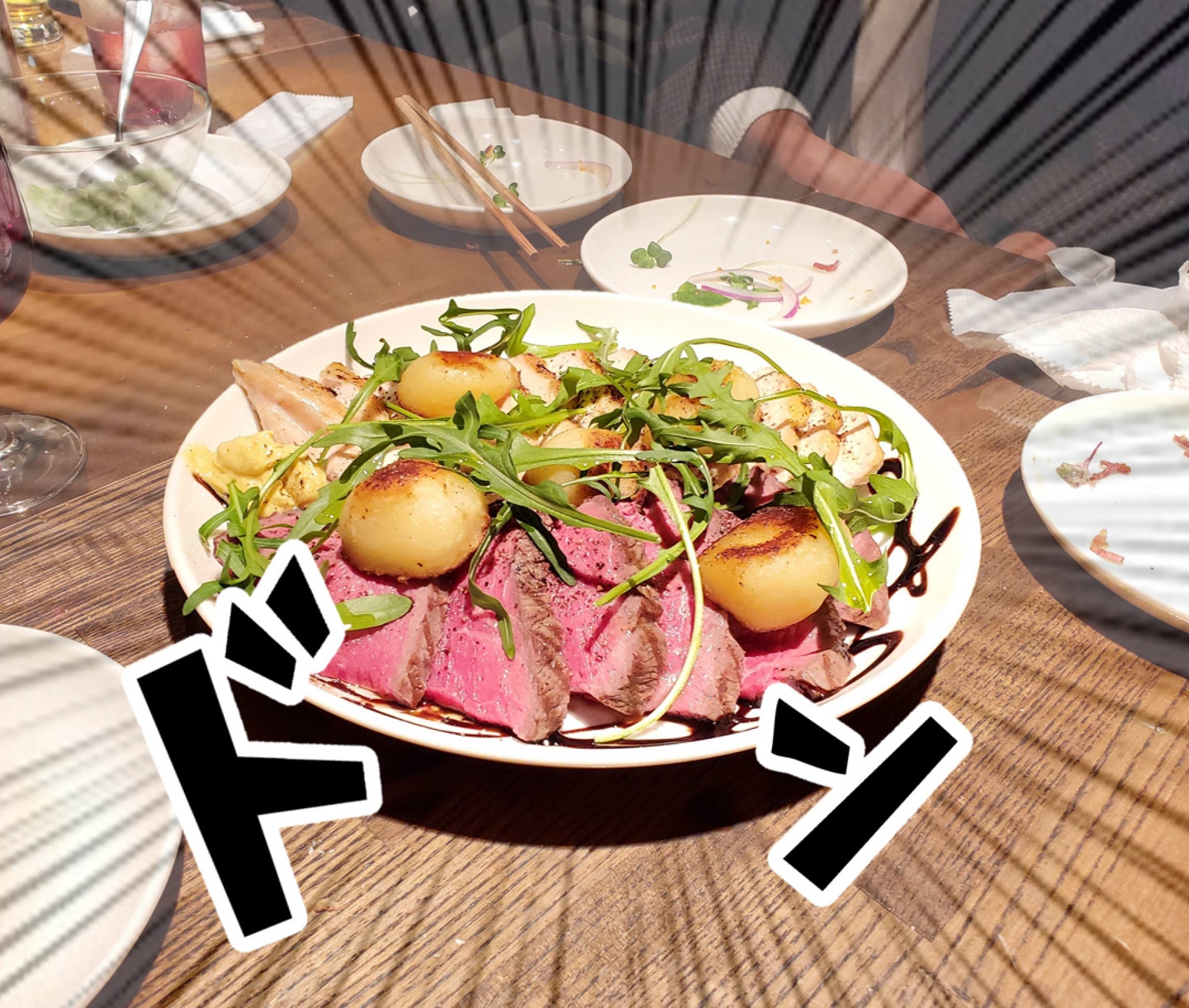 続いて、ローストビーフに、えーと、なんかジャガイモをなんかしたやつ。