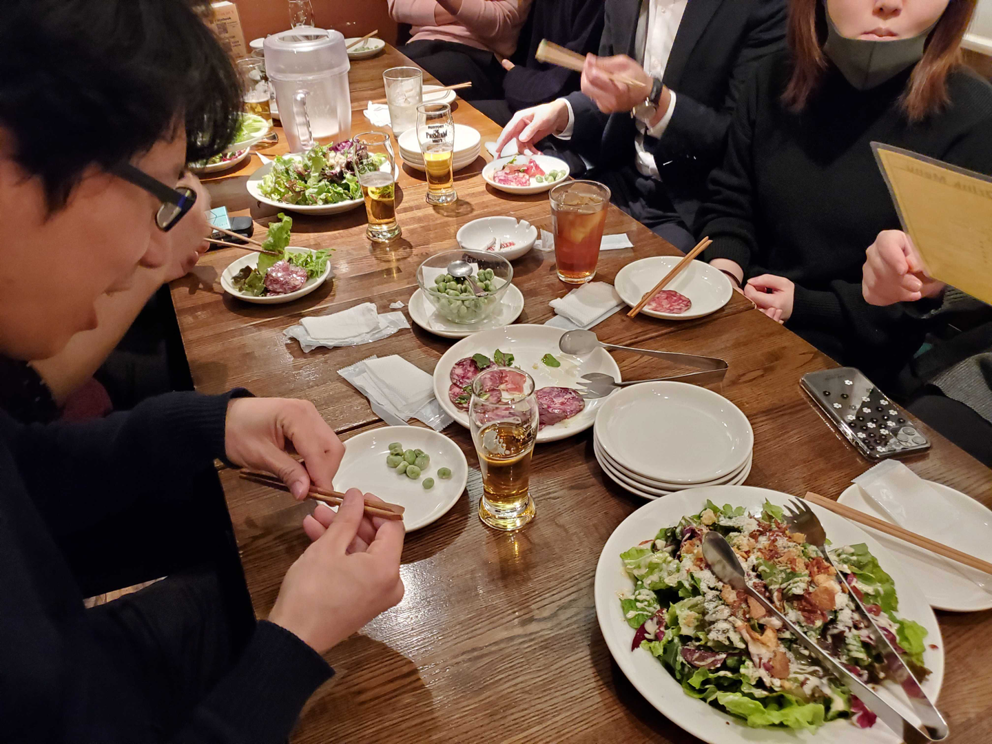ちなみに稲村はパスタで一番好きな麺がフェットチーネなので、このメニューは大変うれしかったです。あまりの嬉しさに「もはやこれは稲村のための懇親会なのか…?」と盛大に誤解しそうになりましたが、3秒で自分を戒めました。(危ない危ない…)