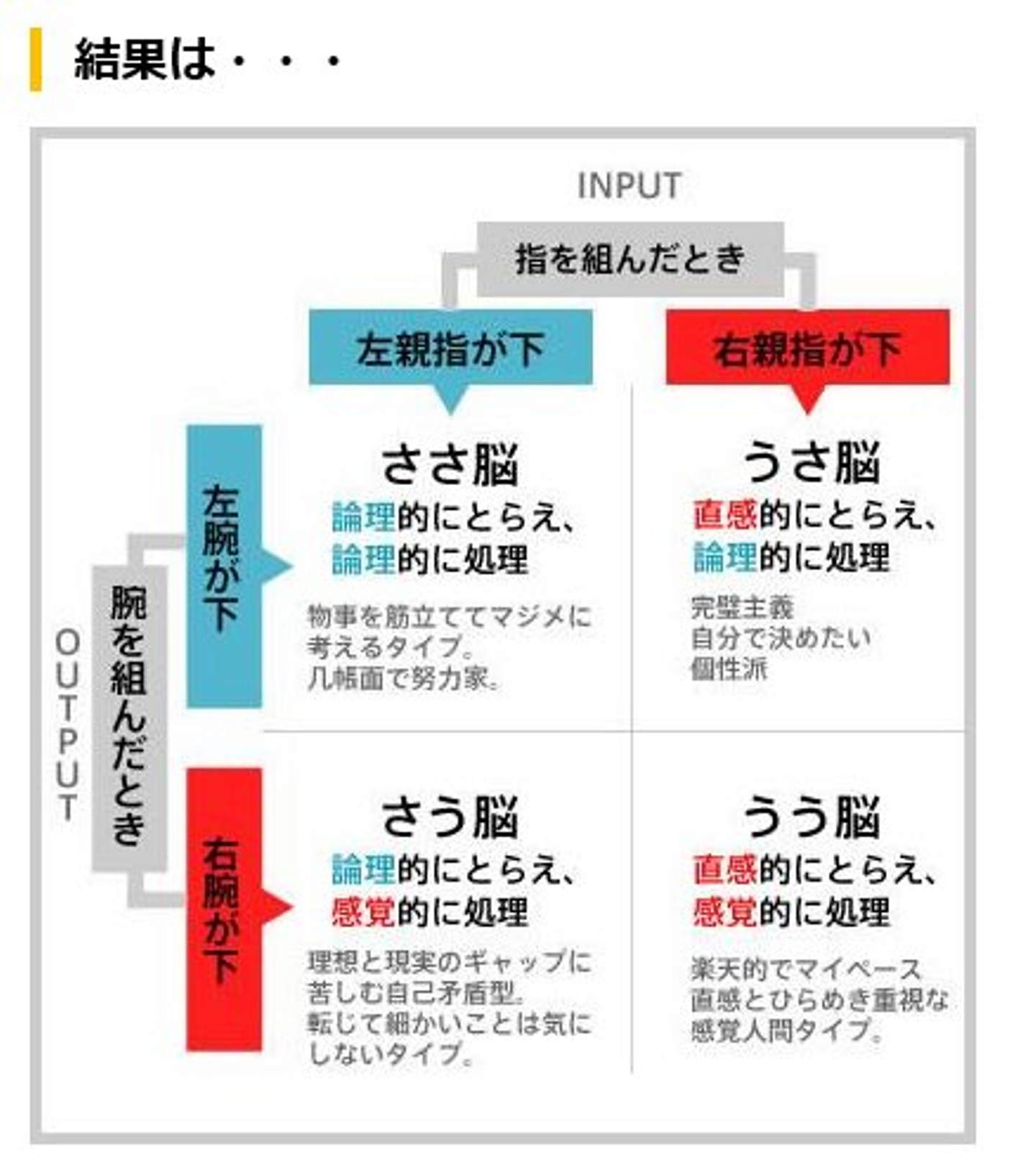 ちなみにこの日、話題になったのは「指と腕を組むことで自分の脳みそが右脳タイプか左脳タイプかを調べるプチ診断」でした。