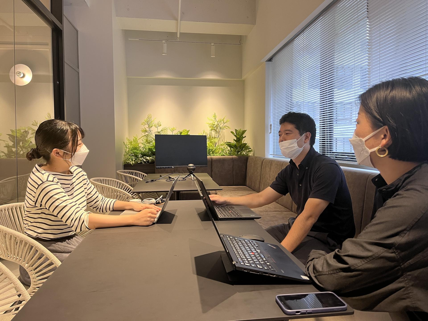 対面の場合、余裕を持って来る方が多いと思いますが、待合室がないケースもありますので、一度オフィスの場所を確認後、近くのカフェで待って調整するといった工夫してもらえると良いのではないでしょうか。