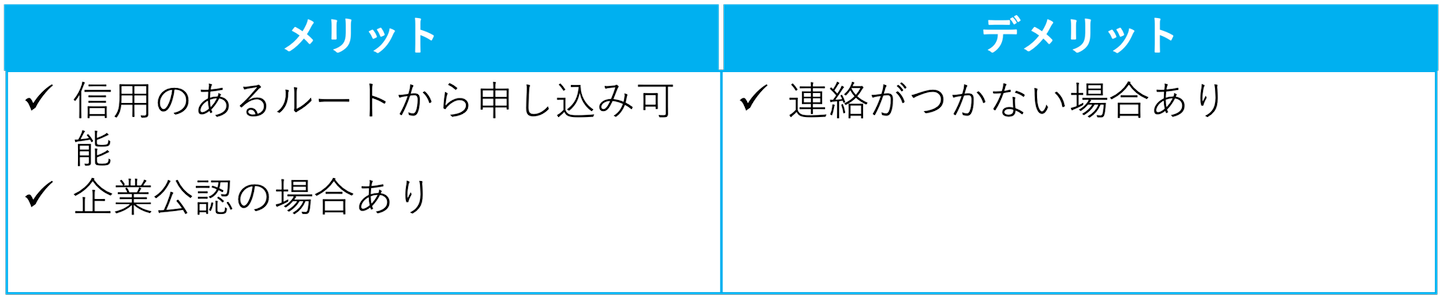 こちらの方法を活用するメリットは、大学という信用のあるルートから探すことができる点、企業公認の場合がある点の二つです。