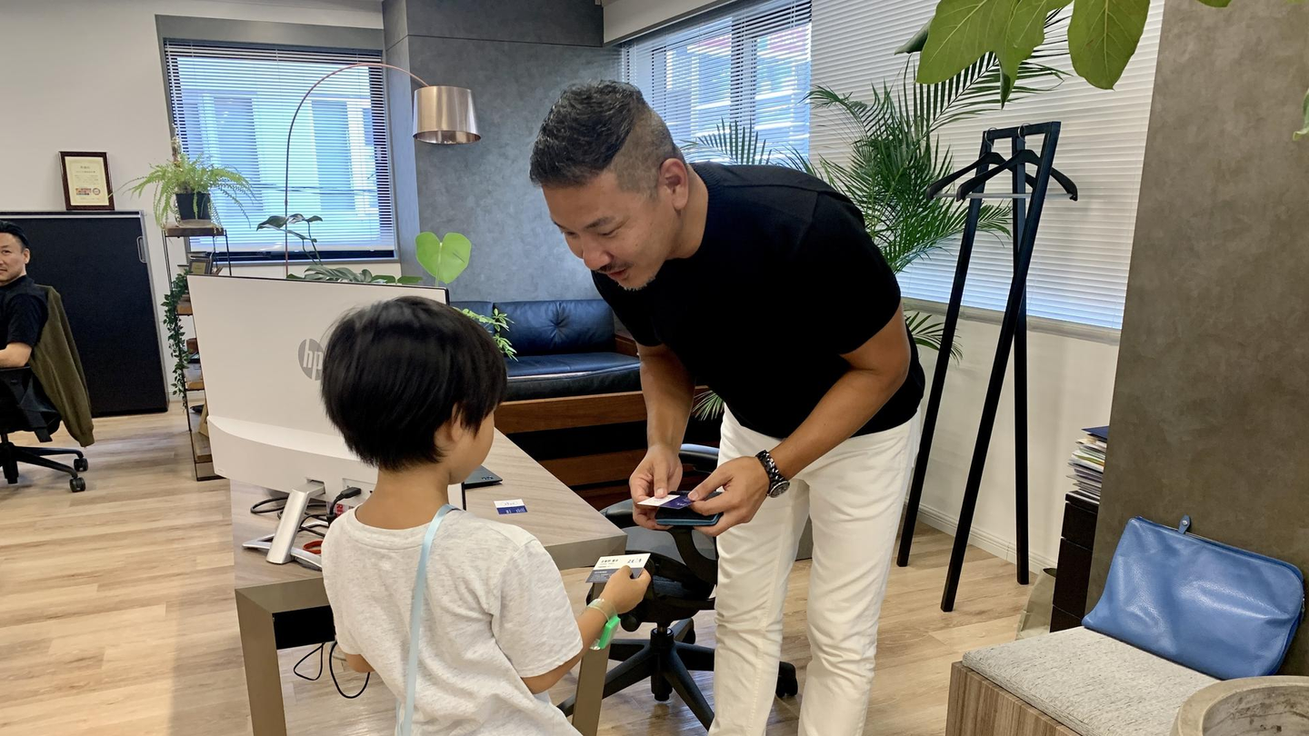 お父さん(取締役/Managing Director 川端さん)が欲しいお菓子を、息子さんが頑張って取っていました!