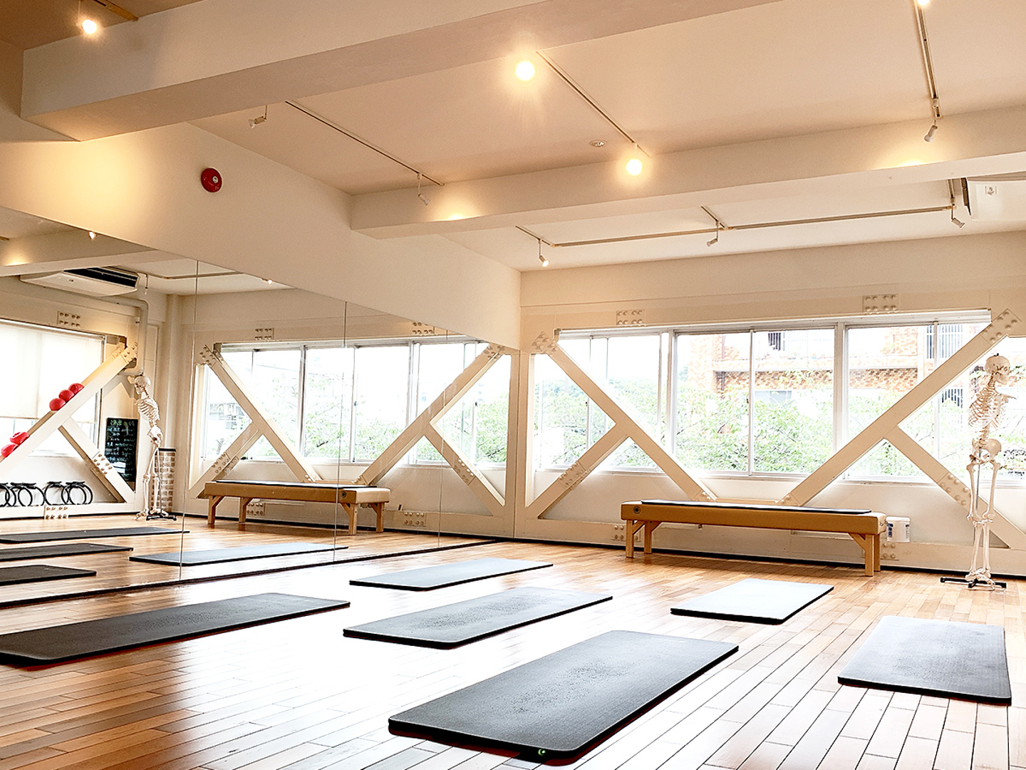 目黒川沿いにあるzen place pilates 中目黒は、大きな窓から見える四季折々の景色がとても美しく、ピラティスメソッドとの相乗効果もあり、レッスンを受けた後はとても気持ちがよいです。