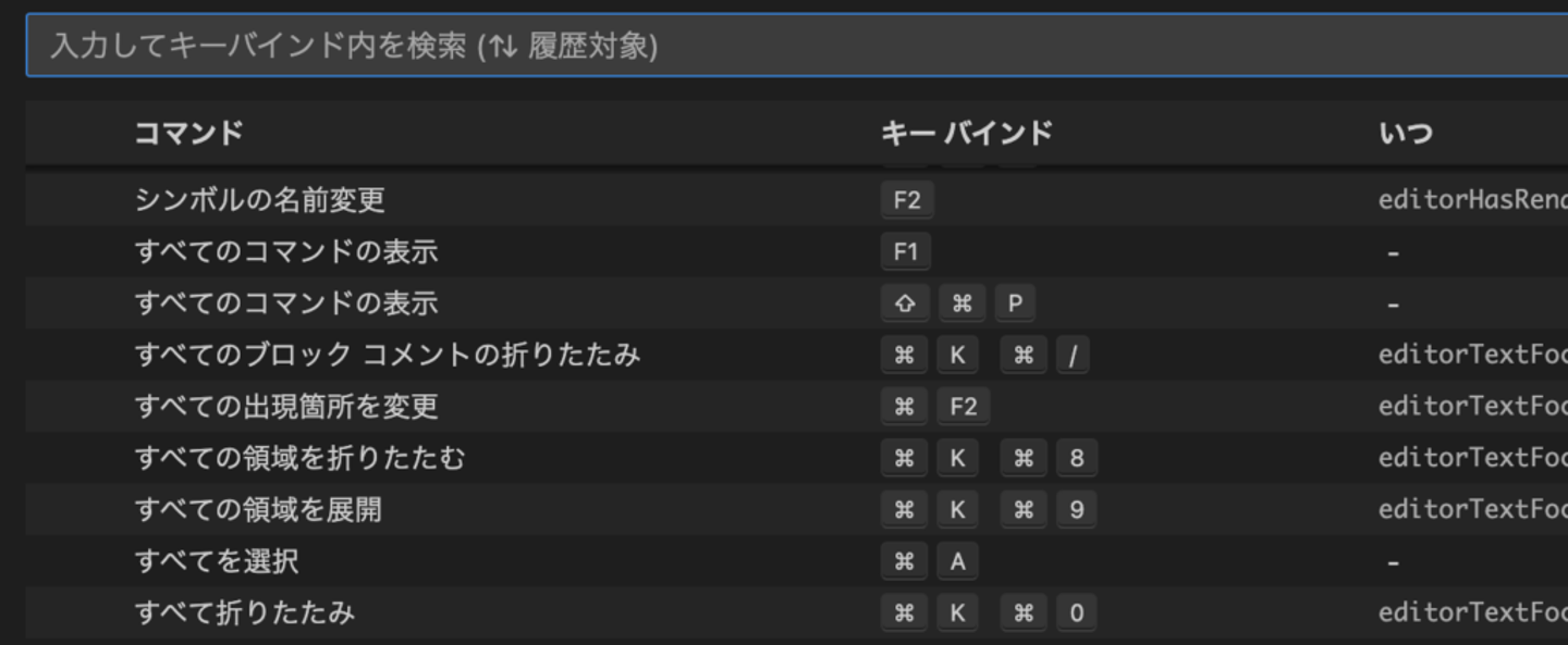 また、一覧を眺めてると便利なショートカットキーを見つけられそうですね。