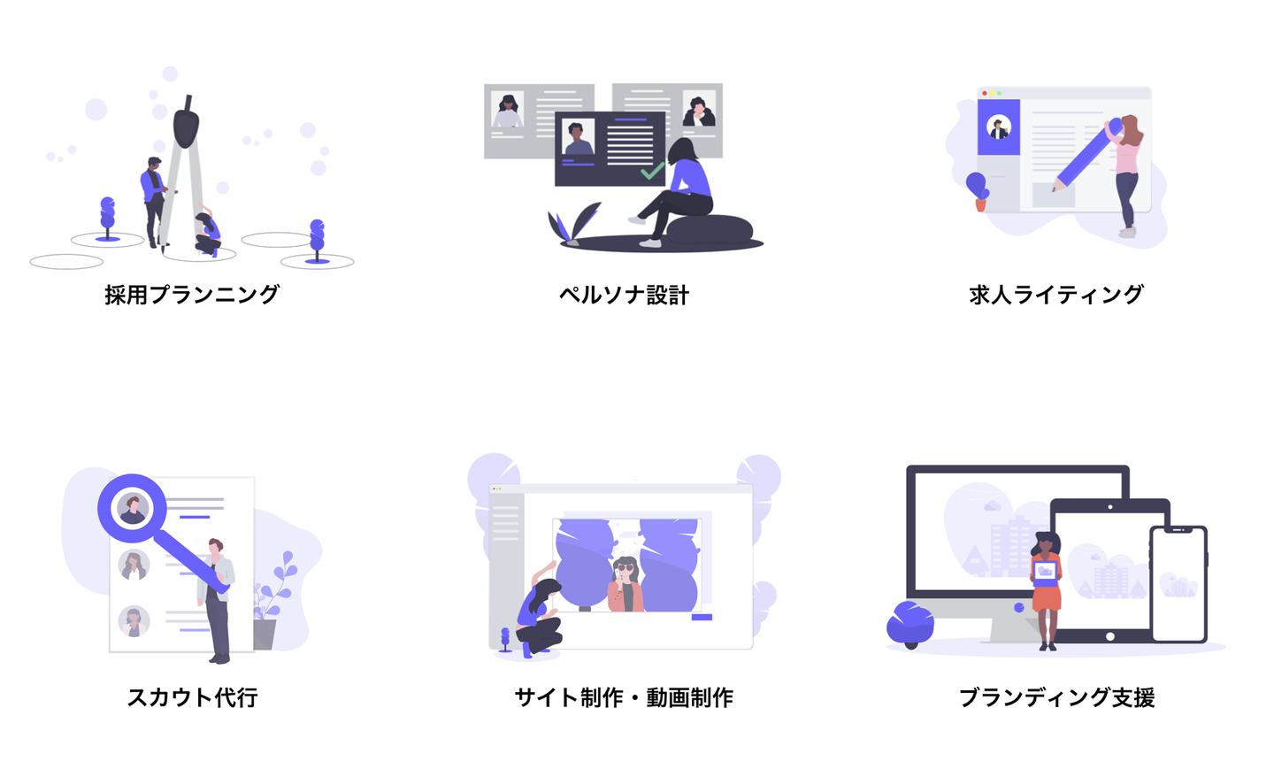 RECREW(リクルー)では、採用において時間と知識が必要となる業務をサポートしております。採用する人物の定義やその人物へ求人をリーチする為の媒体やエージェントの選定、公開している求人の見直し、Wantedlyなどの媒体の運用の代行など各企業に応じて必要なお手伝いをいたします。