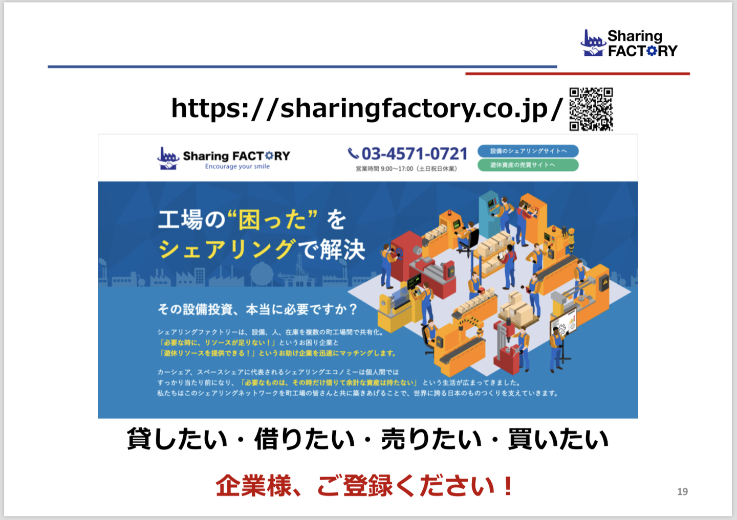 【LT】工場の『困った』をシェアリングで解決〜シェアリングファクトリーの可能性と製造業での活用事例〜