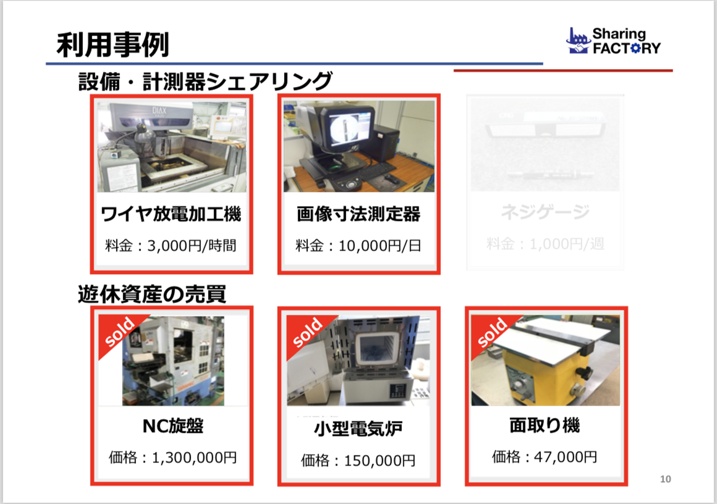 実際に、町工場のネットに疎い方にも使っていただいています。リース会社もあるのですが、1ヶ月で300万円など非常に金額が高いので実は、隣の町工場に眠っていることがある。ただ情報がオープンになっていないので、自分が欲しいものがあることを知らない。