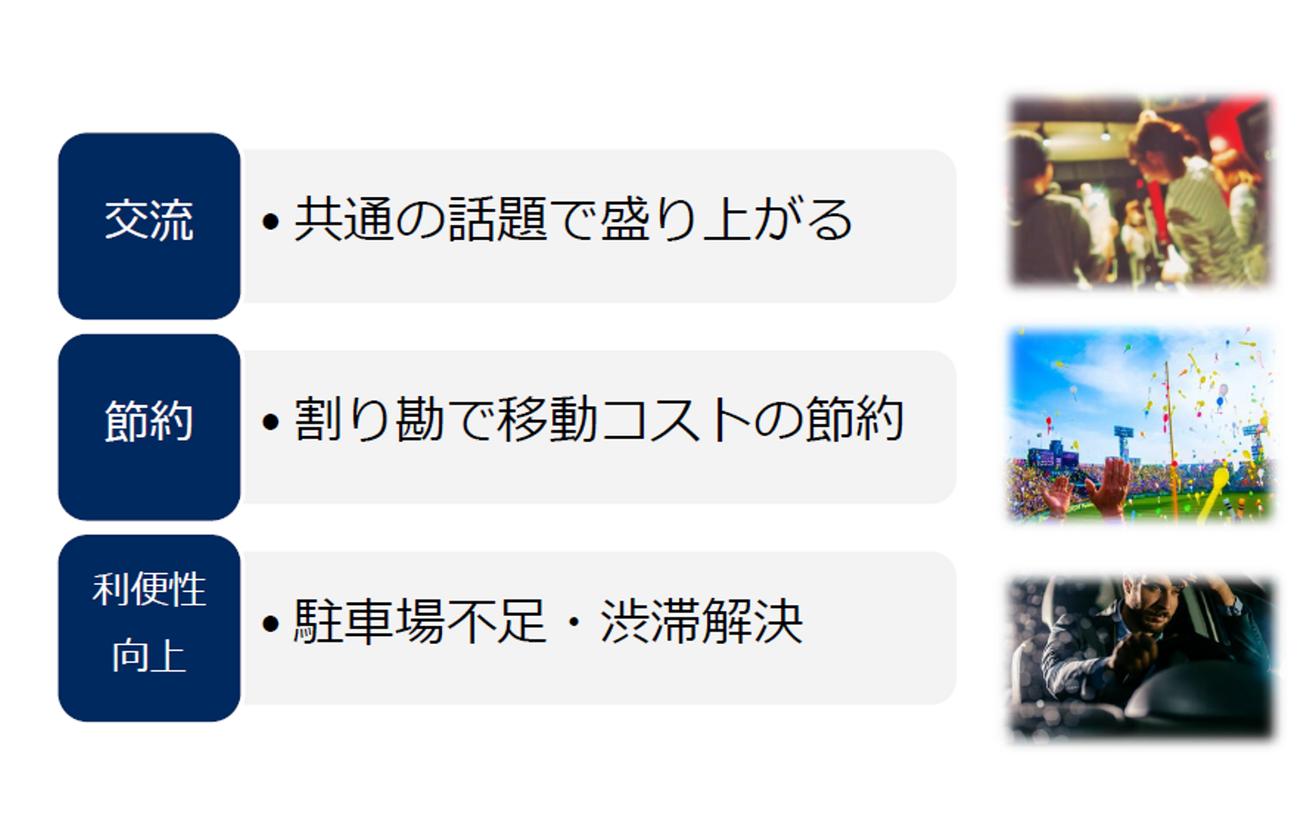 もうひとつはカープール(相乗り)型のライドシェアです。配車型がタクシーなら、こちらはヒッチハイクのイメージです。