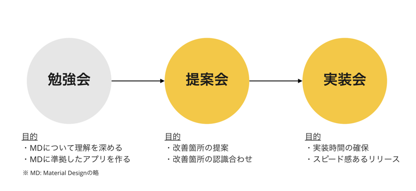 Material Designに準拠できるように、改善できる箇所の認識合わせを目的としました。