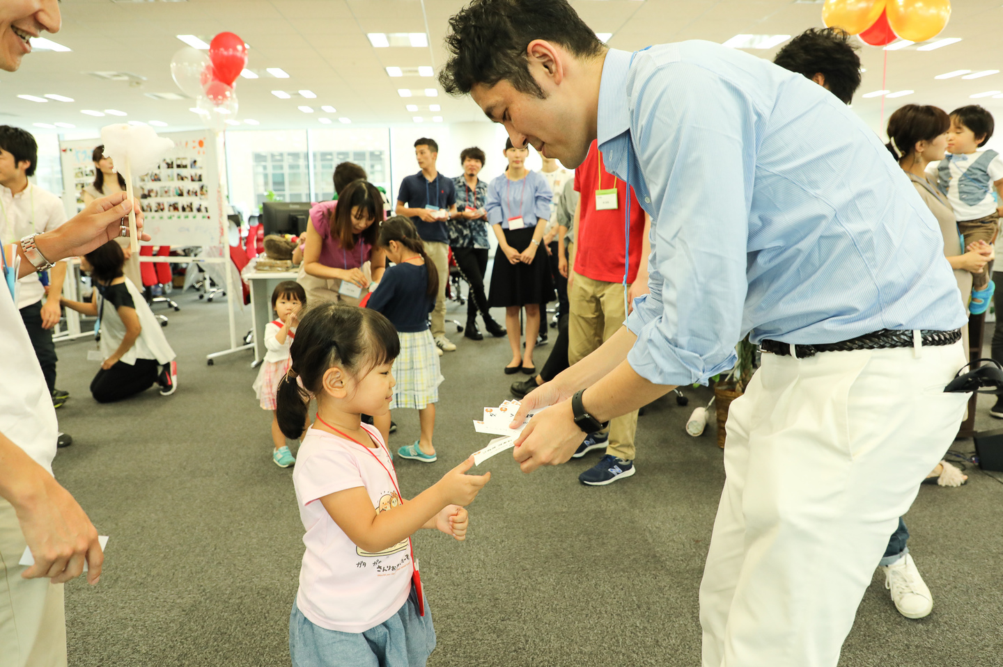 メンバーの名刺がこども縁日で提供しているゲームの参加券になるようにして、コミュニケーションの活性化を図りました。