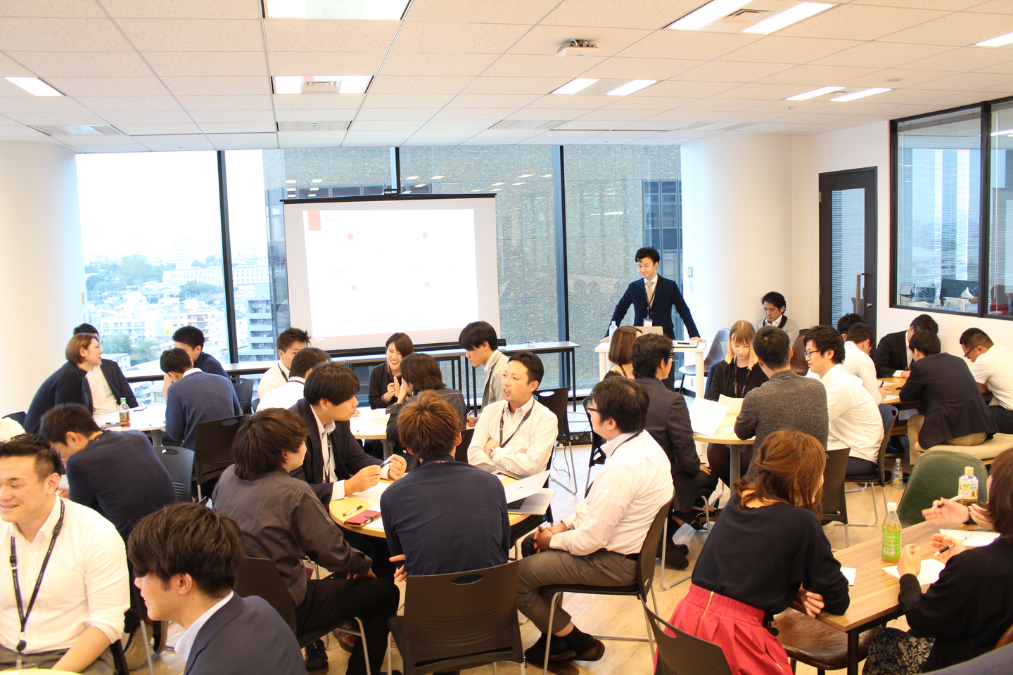 リラックスした雰囲気の中、部署も役職も関係なくシャッフルしたグループで盛り上がっていました!