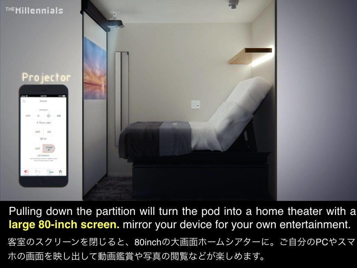 個人的に楽しみにしているのが、IoTで制御する客室「スマートポッド」で、チェックイン時に渡される iPod Touch で操作する照明や、80インチプロジェクター、アラーム設定で自動でリクライニングして起こしてくれるベッドなど、宣伝文句どおり未来感が体験できると期待しています!