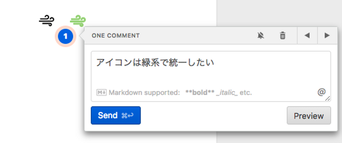 コメントをしたい該当箇所が明確になりますし、メンション機能やresolved機能もあるので、コメントの管理もしやすくなっています。