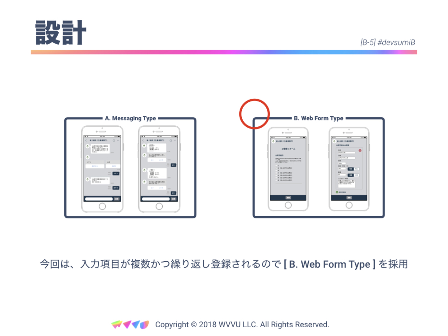 「Vue.js」は 、LINE内のWebViewでフォームを表示するので、「SPA(Single Page Application)」にして動作をシームレスにする目的で利用しました。