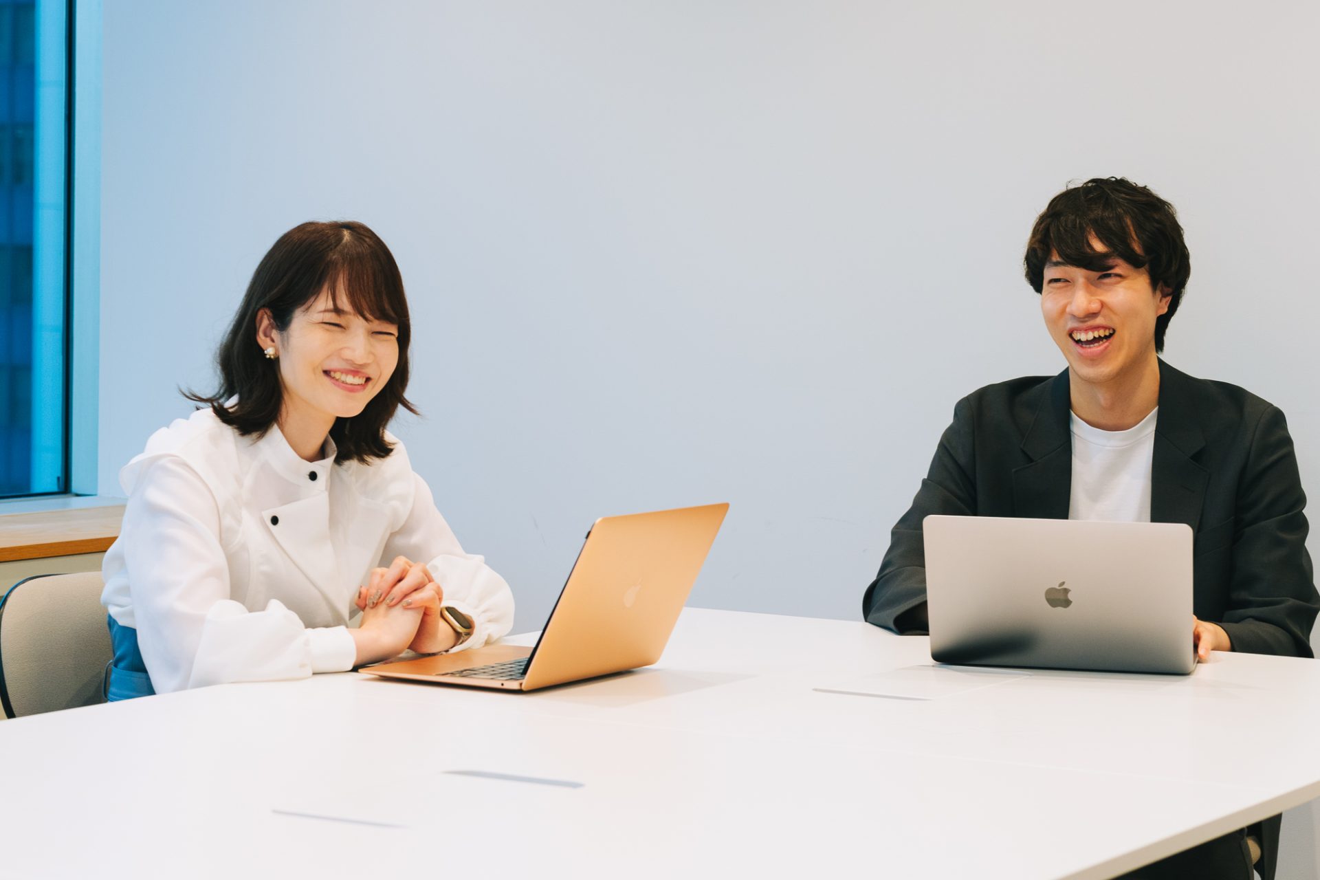 採用の軸は「ビジョン共感」。そんな採用スタイルで巡り会った新入社員とのエピソード、マクアケの採用への思いを、人事本部の菊池宗也さんと三浦はるかさんに聞きました。