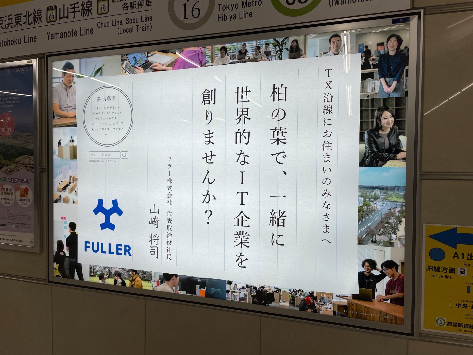 そんな私のモヤモヤを晴らすきっかけが、ある日起きます。TX(つくばエクスプレス)の終点、秋葉原駅の改札を出たところに掲げられた、フラーの採用広告です。