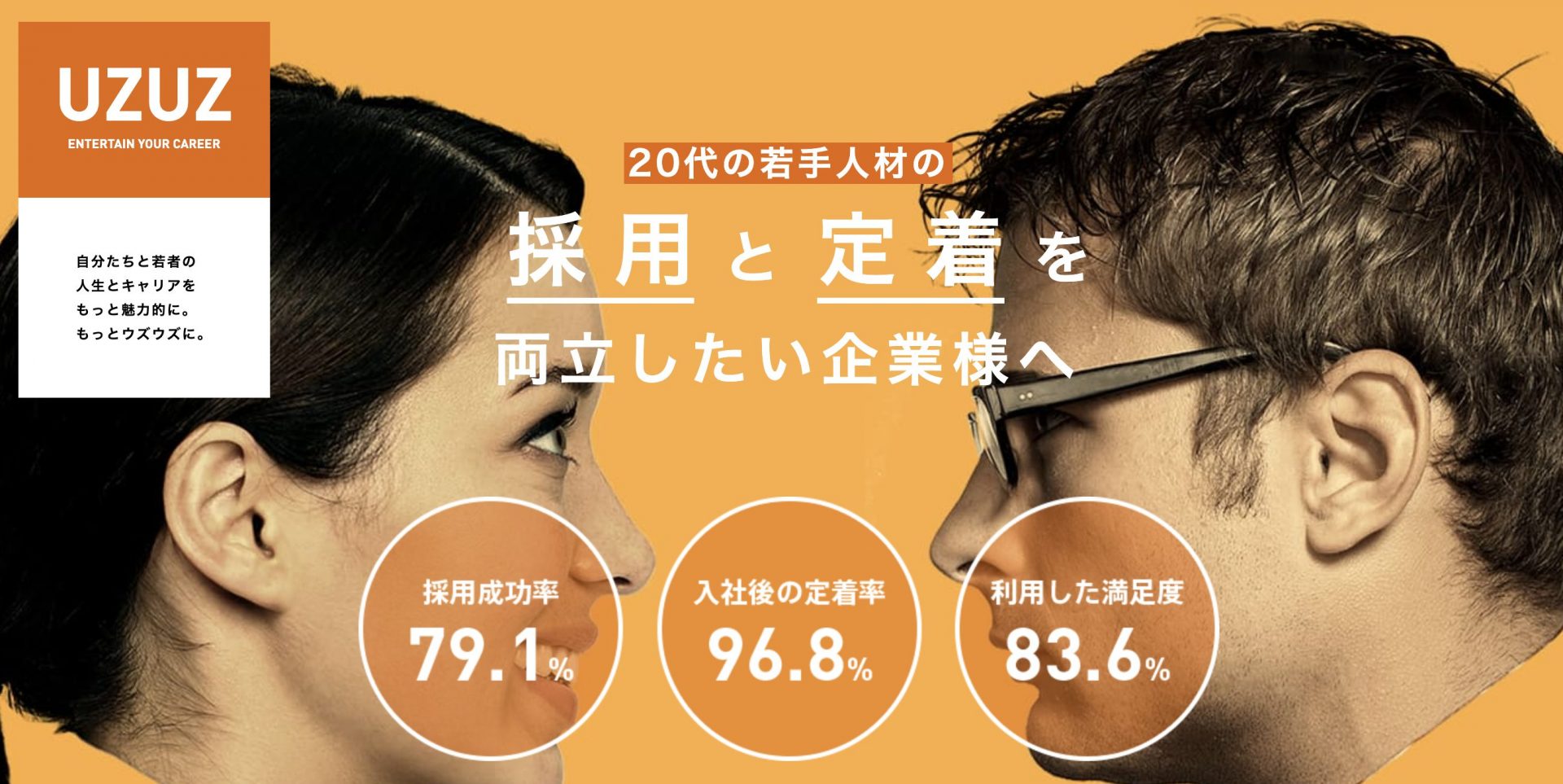 新卒・第二新卒をメインとした20代若手採用に強い株式会社UZUZ。月間2000名を超える登録データベースのなかから、企業にあった人材を紹介してくれます。