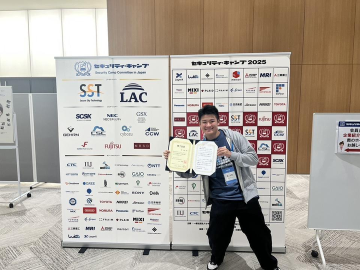 セキュリティ・キャンプ全国大会2025(Z3:AI Agent開発ゼミ)では、 組織ドメインを起点にFQDN・IPを自動解析し、ShodanやVirusTotalを活用して既知の脆弱性を特定するツール「ORG2VULN」 の開発に取り組みました。 私はドメインからFQDNを列挙し、FQDNからIPアドレスを解決する基盤部分の実装を担当し、チーム全体のデータ収集の信頼性向上に貢献しました。 この取り組みは、公開情報を活用して調査を行うOSINT的なアプローチでもあり、実務のセキュリティ調査にも通じるプロセスを体験できました。 短期間でのチーム開発を通じて、AI・セキュリティ・ネットワークの知識を統合的に活用する力を磨くことができました。 また、セキュリティ・キャンプ全国大会における参加レポートを Qiita にまとめて公開しており、具体的な取り組み内容や技術的な試行錯誤を詳しく紹介しています