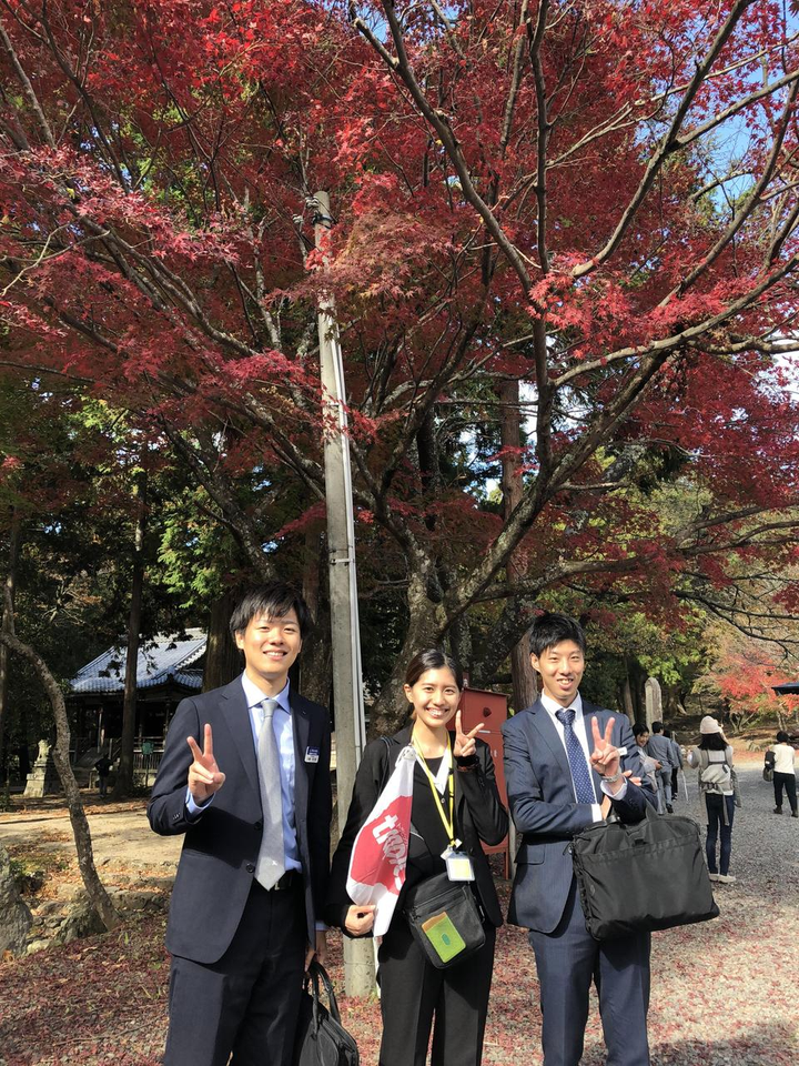 日帰りバスツアーの添乗で滋賀や岐阜方面に紅葉の見物のため同行している模様です!1バス47名様満員御礼でお連れしました!人生で最も肉体的にタフな1日だったと言えますので載せております!笑顔の裏に疲れが見れる1枚となります!