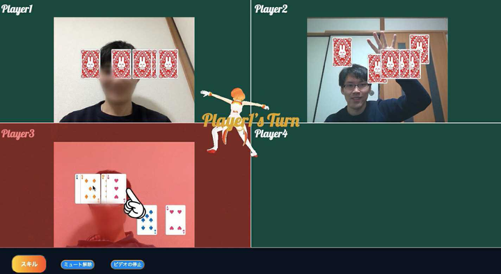 国内最大級のハックイベントであるJPHACKS2020で,学部時代の同期とチームを組んでサービスを開発しました.私たちのサービスは,ビデオ通話アプリにトランプゲームを通したインタラクションを加えたもので,オンラインコミュニケーションにおける空気感の共有を主な目的としています.このサービスは,北海道・関西ブロックの約40チームの中で唯一の企業賞をいただきました.さらに,特定の企業のマネージャからお声かけいただき,有償で実用化を達成しました.