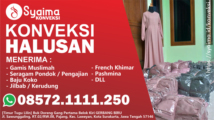 08572.1111.250 - Konveksi Gamis Pekalongan SYAIMA, Konveksi Gamis di Solo Surakarta