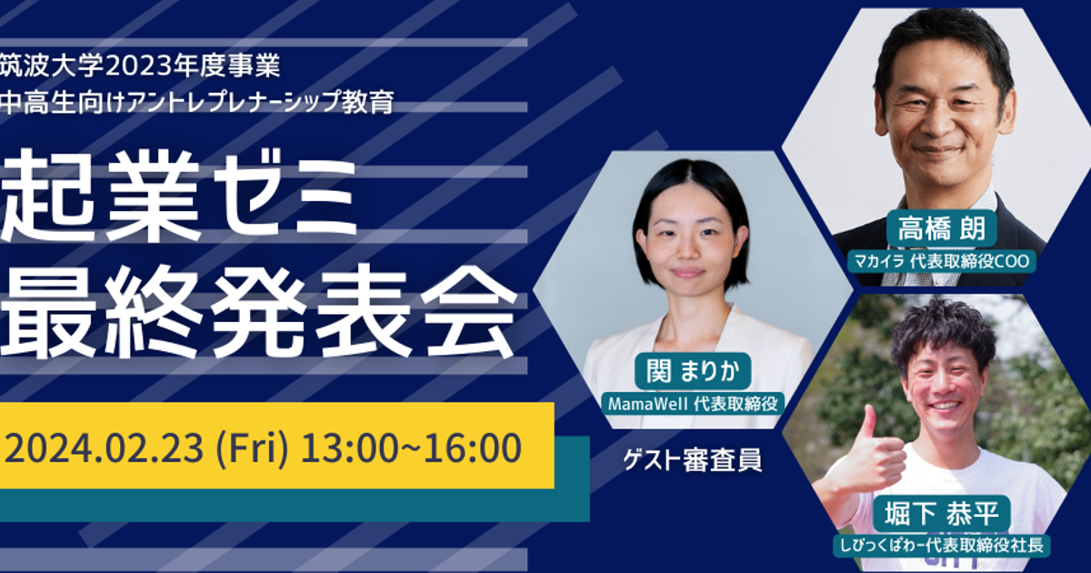 2月23日(金)開催:筑波大学主催の高校生向けアントレプレナーシップ教育プログラム「茗溪学園起業ゼミ最終発表会」に代表取締役COOの高橋朗がゲストとして参加