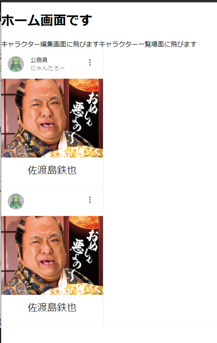 -----何を作ったか?----- Firebase上で保存したキャラクターシートの情報を、カードコンポーネント状にして一覧できる機能を実装しました。 -----なぜ作ったか?----- ・TRPGの進行において、プレイヤー一人一人のキャラクターシートの参照するのが煩雑 ⇩ ・プレイヤー全員のキャラクターシートの情報を一覧できる状態にすることで、TRPGの進行を簡単にする。 -----どうやって作ったか?----- 開発環境:Next.js バックエンド:Firebase ホスティング:Vercel