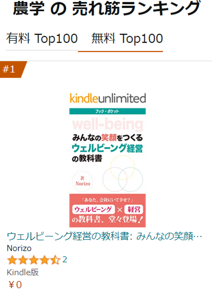 2022年10月31日に『みんなの笑顔をつくる ウェルビーイング経営の教科書』(Norizo名義)でkindle書籍を出版。「農学」で1位になりました。