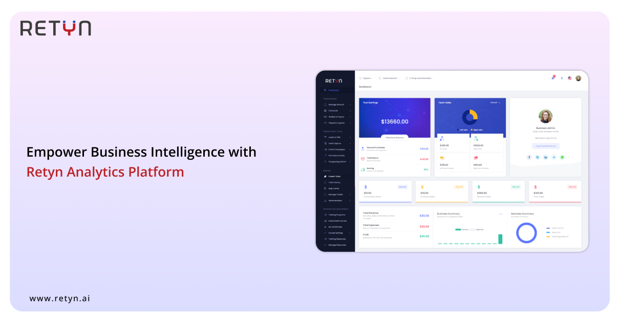 Unlock your enterprise by tapping into the Retyn Analytics Platform to gain deep insights into your data ecosystem. This is an intense tool for complex metrics interpretation and smarter decision making which contributes to great performance.