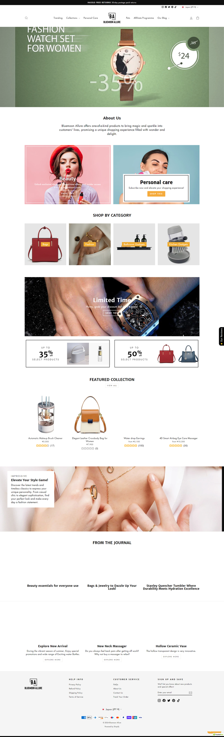 フルスタック開発者として、Bluemoon Allure の Web サイトに関する私の経験には、フロントエンドとバックエンドの開発を通じて機能、セキュリティ、ユーザー エクスペリエンスを強化し、シームレスな統合を確保し、パフォーマンスを最適化し、ユーザー アカウント、安全な支払い、動的コンテンツ配信などの機能を実装して、魅力的で成功するオンライン ショッピング プラットフォームを実現することが含まれます。
