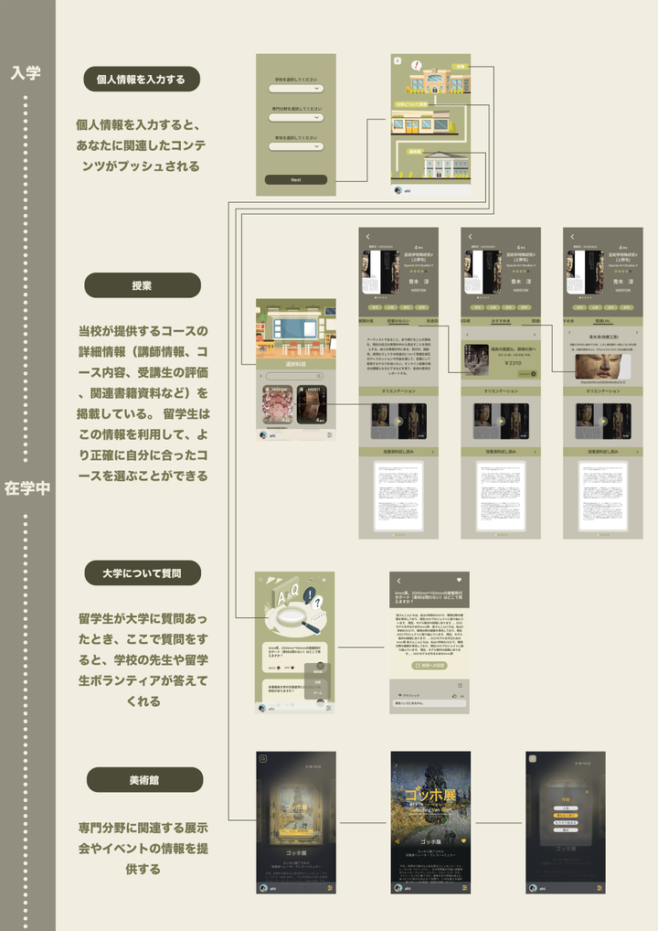 (研究中)美大留学生のために、学校で専門についている詳しい情報を提供するサービス