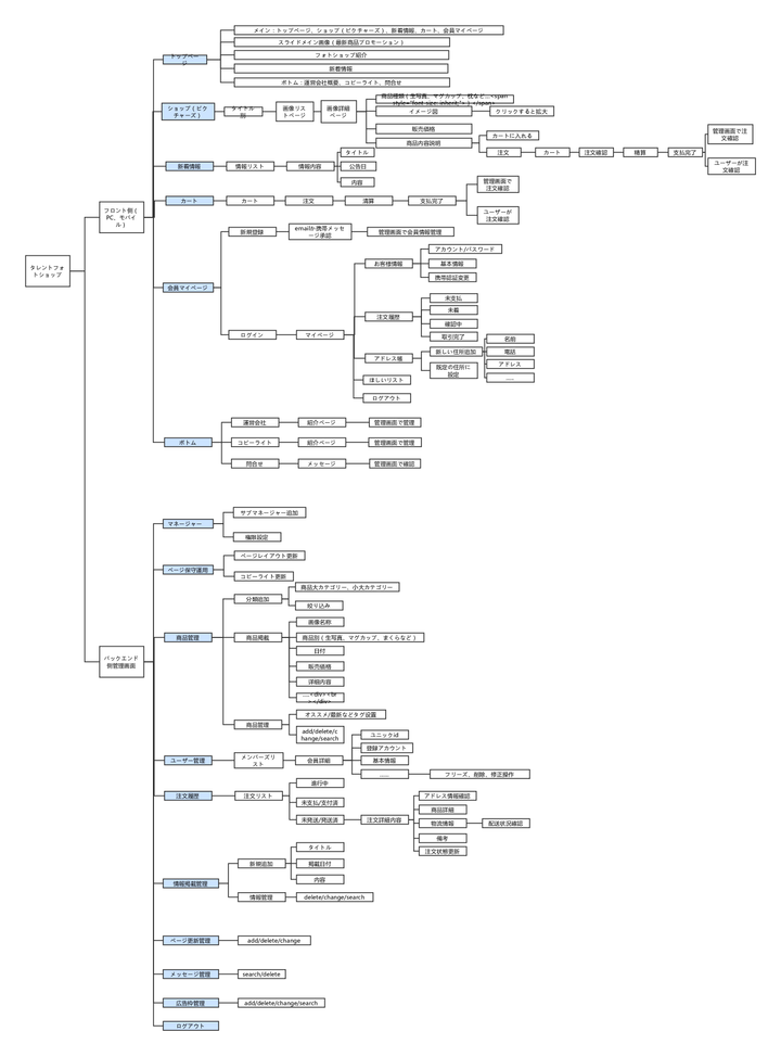 中国現地新規自社ECサービス立上げおよびそれに付随する業務に従事 (サイトマップ設計、現地IT制作会社と協力、WeChatペイ、アリペイ決済申請導入、グッズ制作、物流、カスタマーサポートなど) ※画像が自分で設計したイメージ図です。現地のIT制作会社と話しながら自社ECサービスを実現させた。