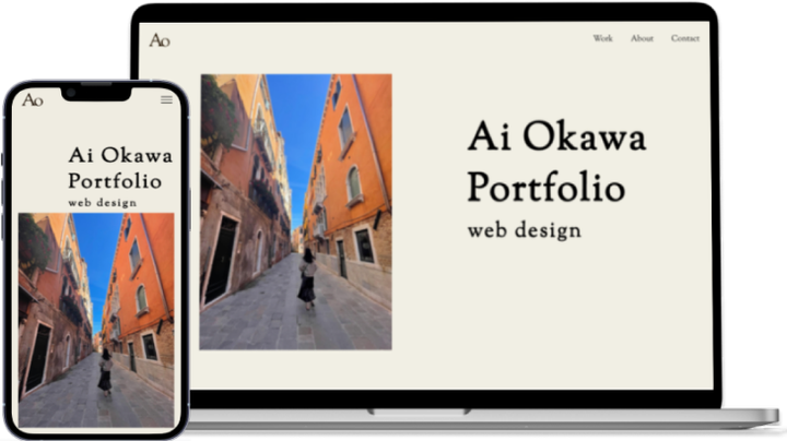 自身のポートフォリオサイトを制作しました。 担当範囲:企画 / デザイン / コーディング 制作期間 :10日間(企画、デザイン4日間、コーディング2日間、Wordpress化3日間) 使用技術: Figma / HTML / CSS / Java script / Wordpress ▼目的 就職活動を行うにあたり、自身の経歴や強み、またこれまでの制作物 や思考を伝えるため ▼デザインコンセプト シンプルなデザインの中でも、「私自身」をお伝えできるよう趣味の旅行を通し て撮影した写真や好きな言葉、カラーで表現しました。 シンプルなデザインだけに単調にならないように余白を取ったり背景色を変える ことを意識しました。 ▼情報設計 コンテンツの配置において採用担当者の方が、どんな感情の流れで目を通してく ださるのかストーリーを組み立てながら構成しました。まず最初にWorkにて 「どんなことが出来る人」なのかを知っていただいた後、自身についての強みや 感性を伝えられるよう構成しました。