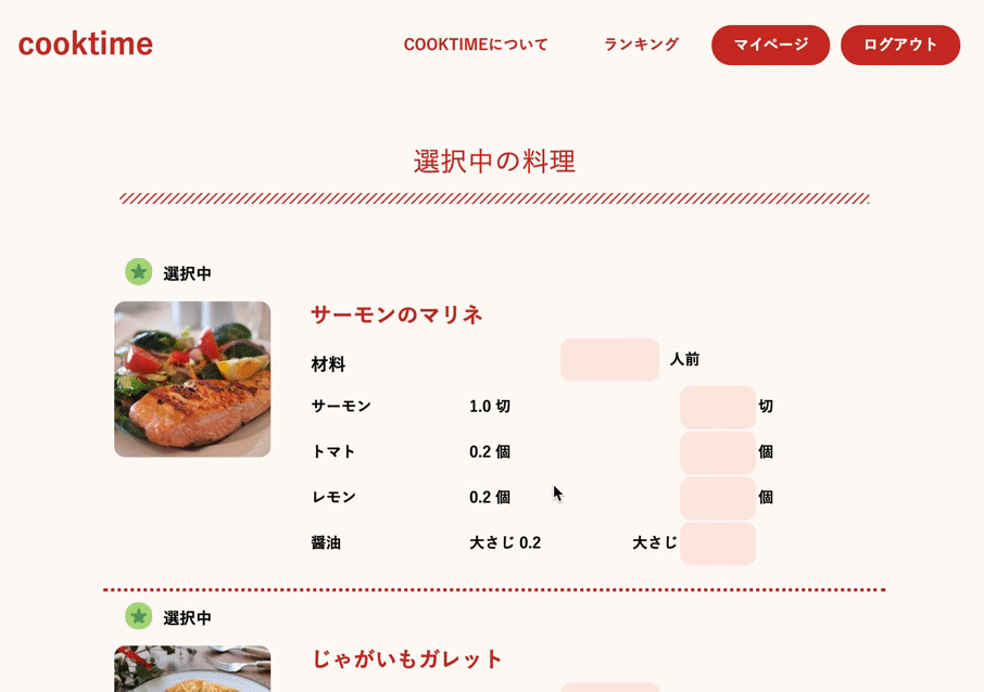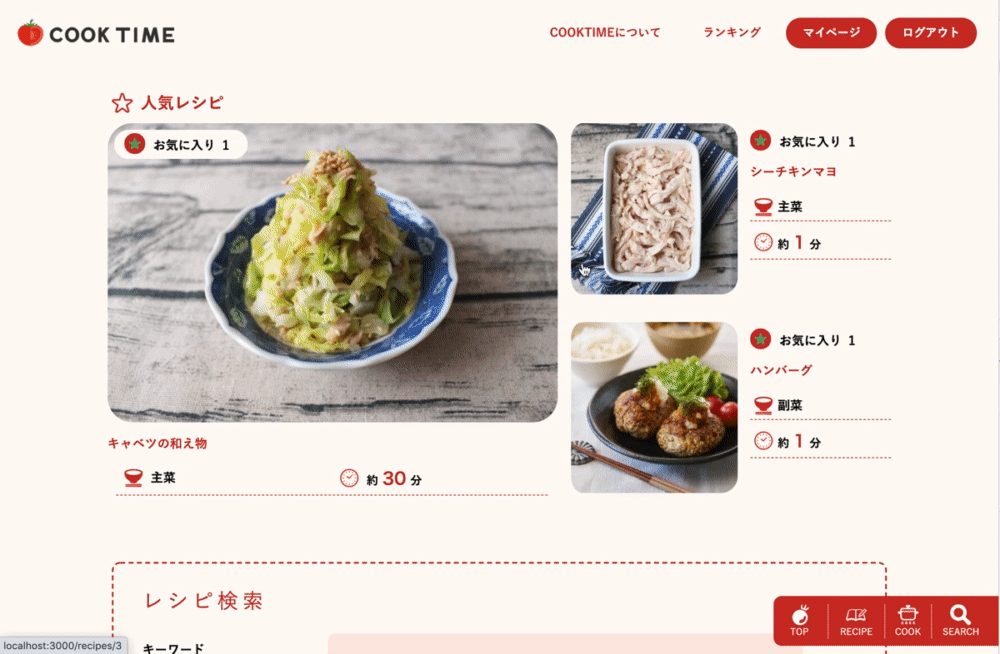 自己制作アプリケーション:http://cooktime.work/ GitHub URL: https://github.com/airi0623/cooktime Qiita: https://qiita.com/matata0623