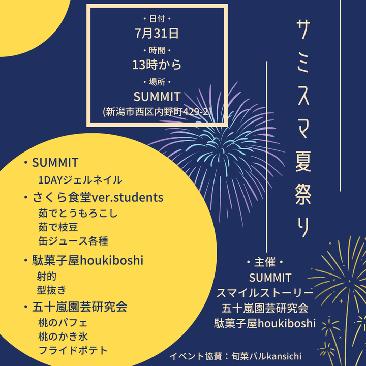 大学の周辺地域で子ども食堂やビーチクリーンを行っている団体と協働で夏まつりを開催しました。コロナ禍で地域のお祭りやイベントが規模を縮小してしまっていましたが、コロナが収束したタイミングでまた地域が盛り上がるようなきっかけづくりをしたいと思い企画しました。子供向けのゲームコーナーと繋がりのある農家さんから仕入れた果物・野菜を使ったフードを提供しました。イベントの企画から実施までを自分自身で一貫して行ったのは初めてで難しさも学びました。計画性や宣伝方法等で改善すべき点はありましたがたくさんの方に来ていただくことができました。翌年は地域の盆踊り大会に出店という形で開催させていただきました。
