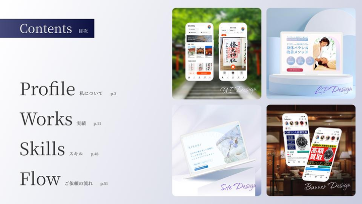 営業用ポートフォリオをPDFにてまとめました UI、LP、サイト、バナーの制作事例をまとめております