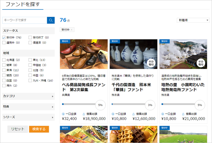 インパクト投資プラットフォーム セキュリテ 検索ページ
