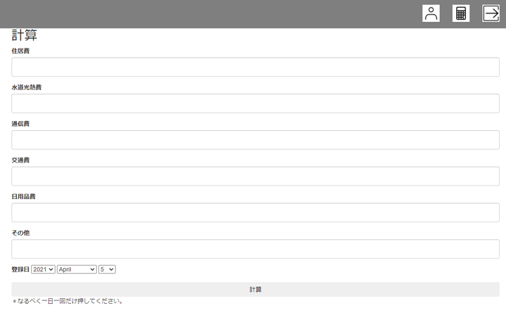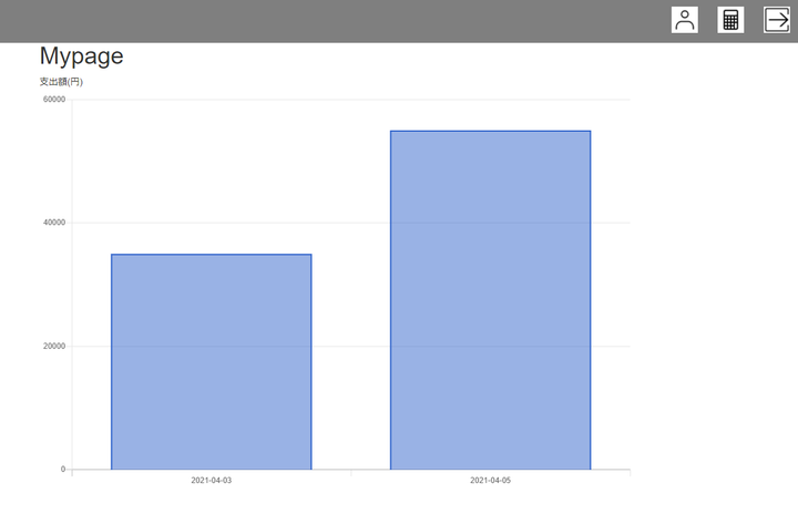 支出額を計算して記録するアプリです。 棒グラフと円グラフでそれぞれの記録を出します。 *円グラフは計算した結果ごとに1回しか表示しません。ページ更新を行うと消えます。