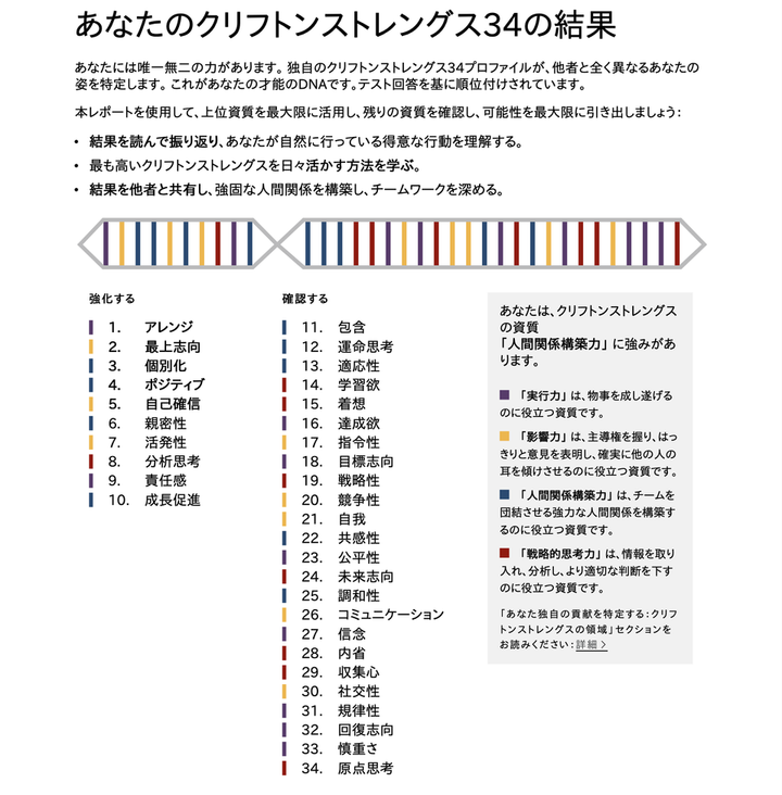 自分はこんなタイプの人間です 【上位資質】 ・アレンジ ・最上志向 ・個別化 ・ポジティブ ・自己確認