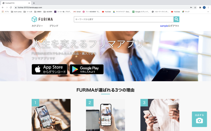 2020年9月から11月末までテックキャンプに通っていました。 卒業制作として、上記のフリーマーケットアプリの作成を行いました。 ユーザーの新規登録、商品の出品、購入、編集を行うことができます。