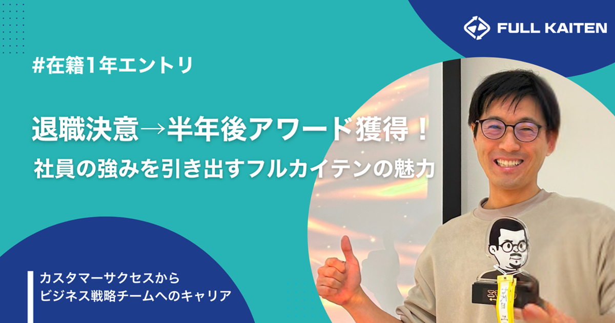 入社半年、負のスパイラルから退職決意。なのに半年後 社内アワード獲得!社員の強みを引き出すフルカイテンの魅力