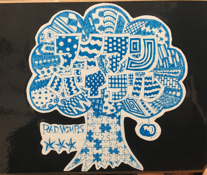 RADWIMPSさんのアイアンバイブルという曲のデザインです。 アイアンバイブルという曲は、たとえ世界があした滅びようとも僕は今日リンゴの木を植えよう。というなんとも素晴らしい歌詞の曲で私はこの歌詞に惹かれました。このデザインは高校生の時に描いたものです。歌詞のリンゴの木をヒントに描きあげました。
