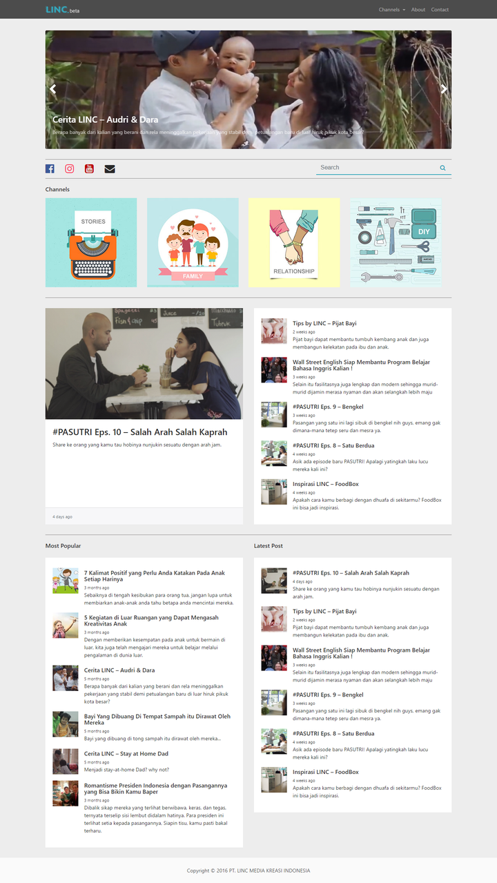 Frontend, Backend & API development at linc.co.id, an advertising and entertainment website