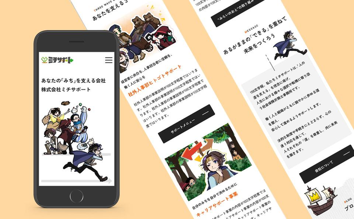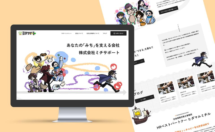 社労士事務所「ミチサポート」様の企業サイトをデザインさせていただきました。 ご支給いただいたイラストを主役にしつつ、テキストを活かしたいご希望に沿うよう、情報整理と文字の見やすさを重視しました。 ロゴカラーであるオレンジをアクセントとして使用し、社労士事務所としての信頼感を保ちつつ、相談しやすい暖かみのある印象に仕上げました。 また、「ミチサポート」という企業名に合わせて“道”をイメージした図形を取り入れ、未来へ寄り添いながら導く存在であることを視覚的に表現しています。 ■コーポレートサイト 担当:デザイン デザインツール: Figma ページ数:全8ページ