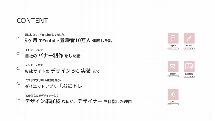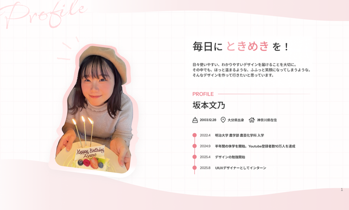 2025年4月からUIUXの勉強を始め、8月にUIデザイナーとして、インターンに入りました。 現在もUIUXデザイナーに就職するべく、奮闘中です。