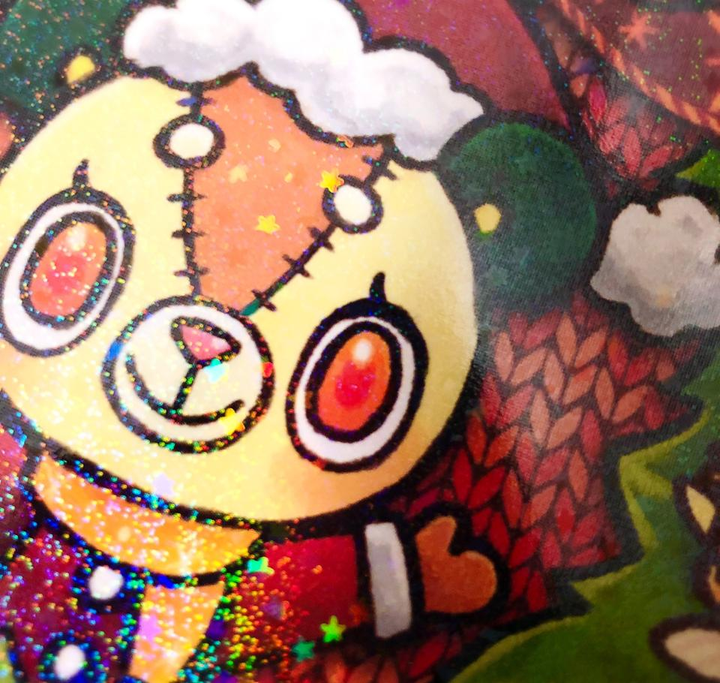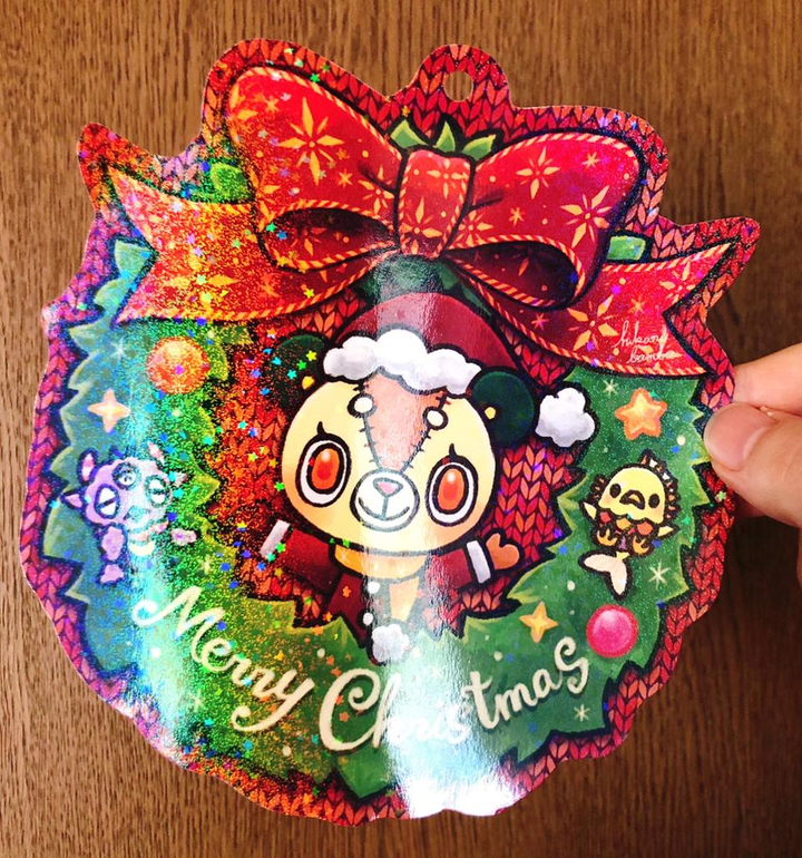 オリジナルクリスマスカード。表面ホログラム仕様。紐やリボンを通して飾ることもできます。
