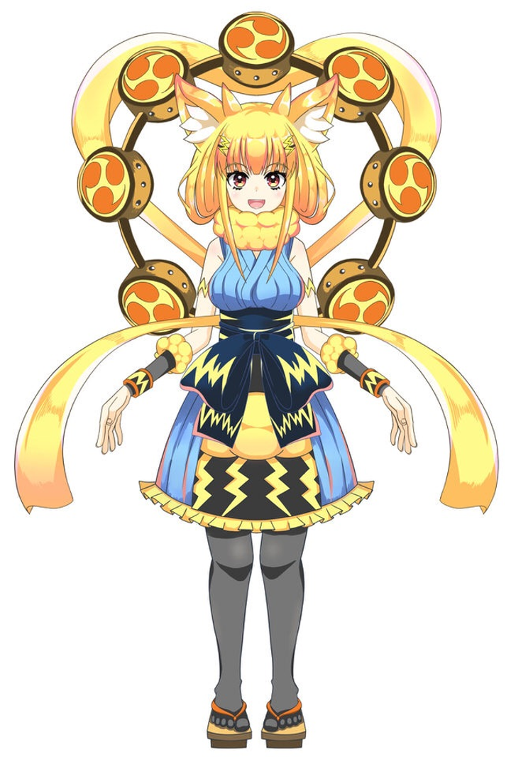 Live2Dの拡張補完を使って作りました。 太鼓がぐるぐる回転しながら電気を出します。